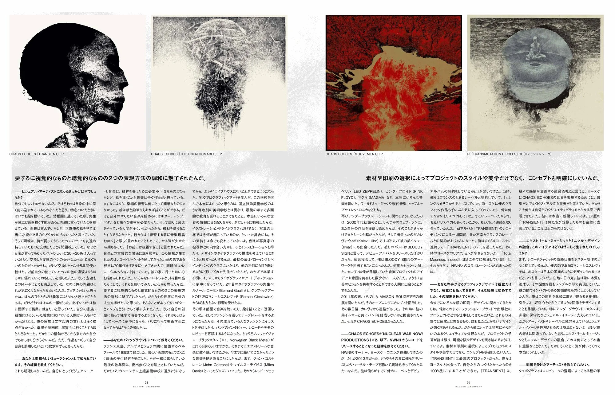 My warmest acknowledgements to Yoshi Yubai who wrote an 8-Page article about my visual work on the winter issue of Japanese magazine Hidden Champion.